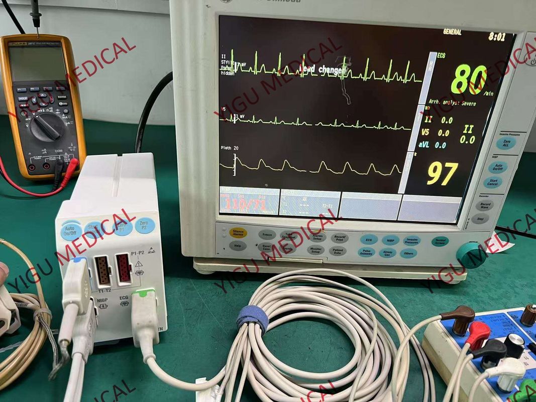 電気心電図 (ECG) を含め心臓の電気活動を反映し 動脈不全などの心臓関連の問題を検出するのに役立ちます非侵襲性血圧測定 (NIBP) が利用可能で,患者の血循環状態を評価するために収縮期および膨張期血圧に関する情報を提供します.血圧を測定する 6 つの侵入的なチャネルもあります温度,酸素飽和度 (SpO2) と呼吸速度は他のキーパラメータです. さらに,それは5 - エージェントの監視と記録の能力を持っています.麻酔や呼吸器治療のシナリオで,関連するガスや物質のレベルを監視するのに有用です..